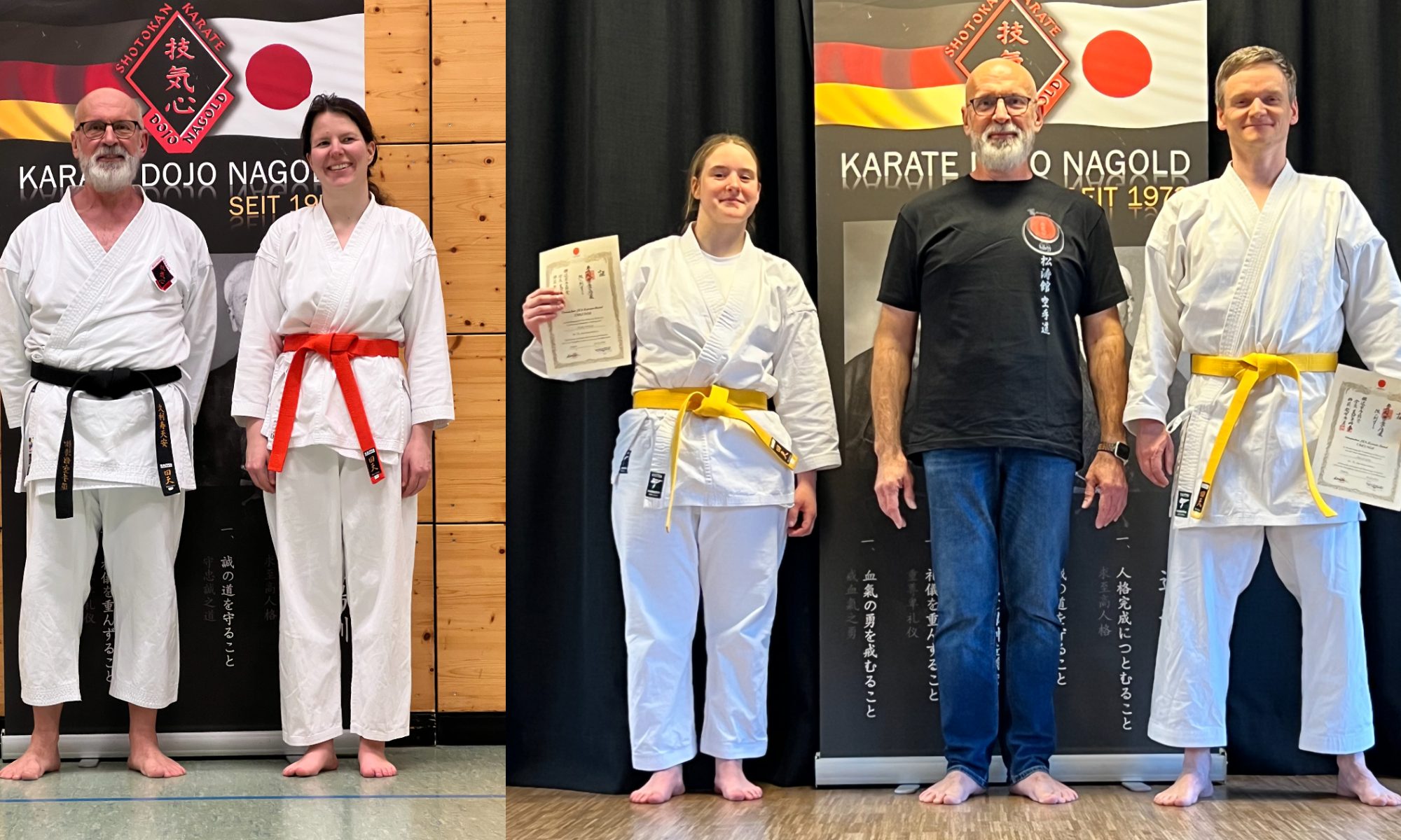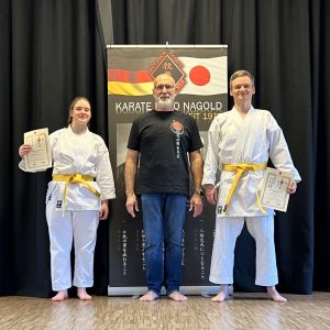 Alle drei Prüflinge zeigten Kampfgeist, eingebaute anspruchsvollere Passagen haben sie wie echte Karateka in Angriffe genommen und haben nicht resigniert. Selbst kleinere Fehler konnten sie korrigieren, so dass dem Bestehen der Prüfung nichts im Wege stand.